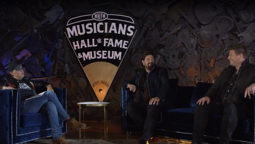 Legendary icons Alan Parsons and Joe Bonamassa with Jordan Asher during the livestream event held at the Musicians Hall of Fame in Nashville, TN introducing the new single "The NeverEnding Show" written and performed by Jordan Asher and Alan Parsons.